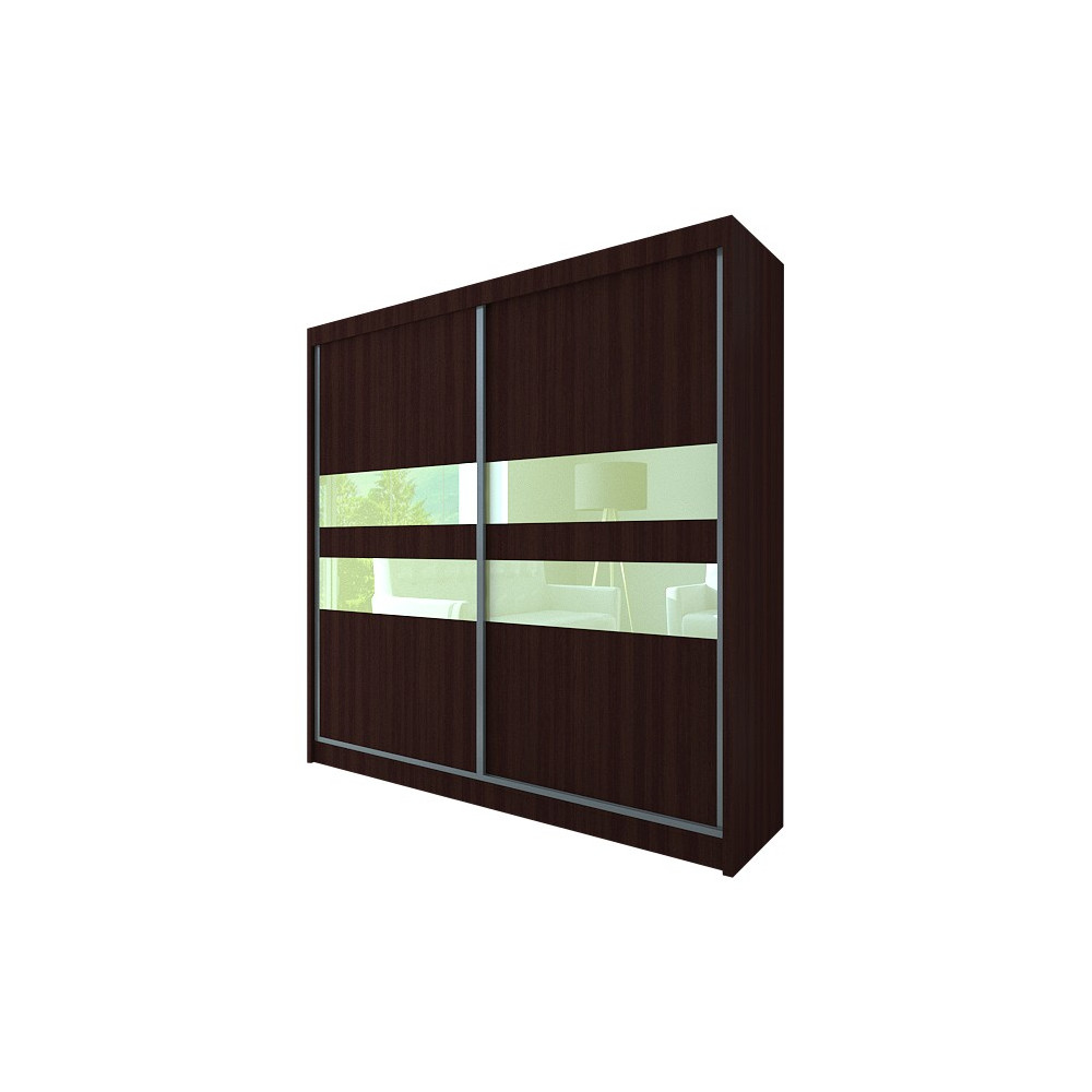 Szafa przesuwna z płyty laminowanej 16 mm. Szafa wyposażona jest w system jezdny zawierający aluminiowe prowadnice typu LAGUNA oraz kółka ułożyskowane