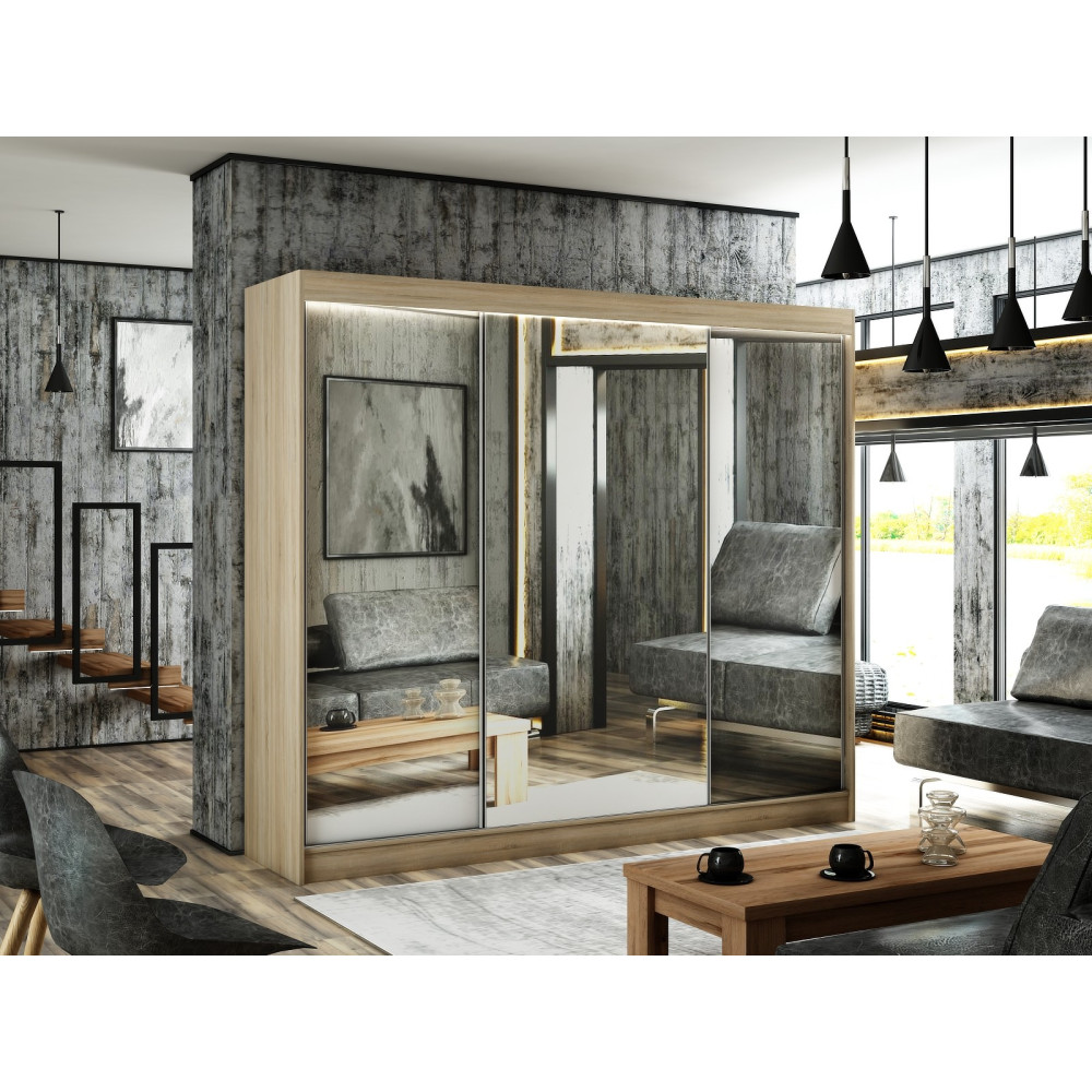 W skład zestawu wchodzą: korpus, półki, 3x drążek, zestaw montażowy, fronty lustra.