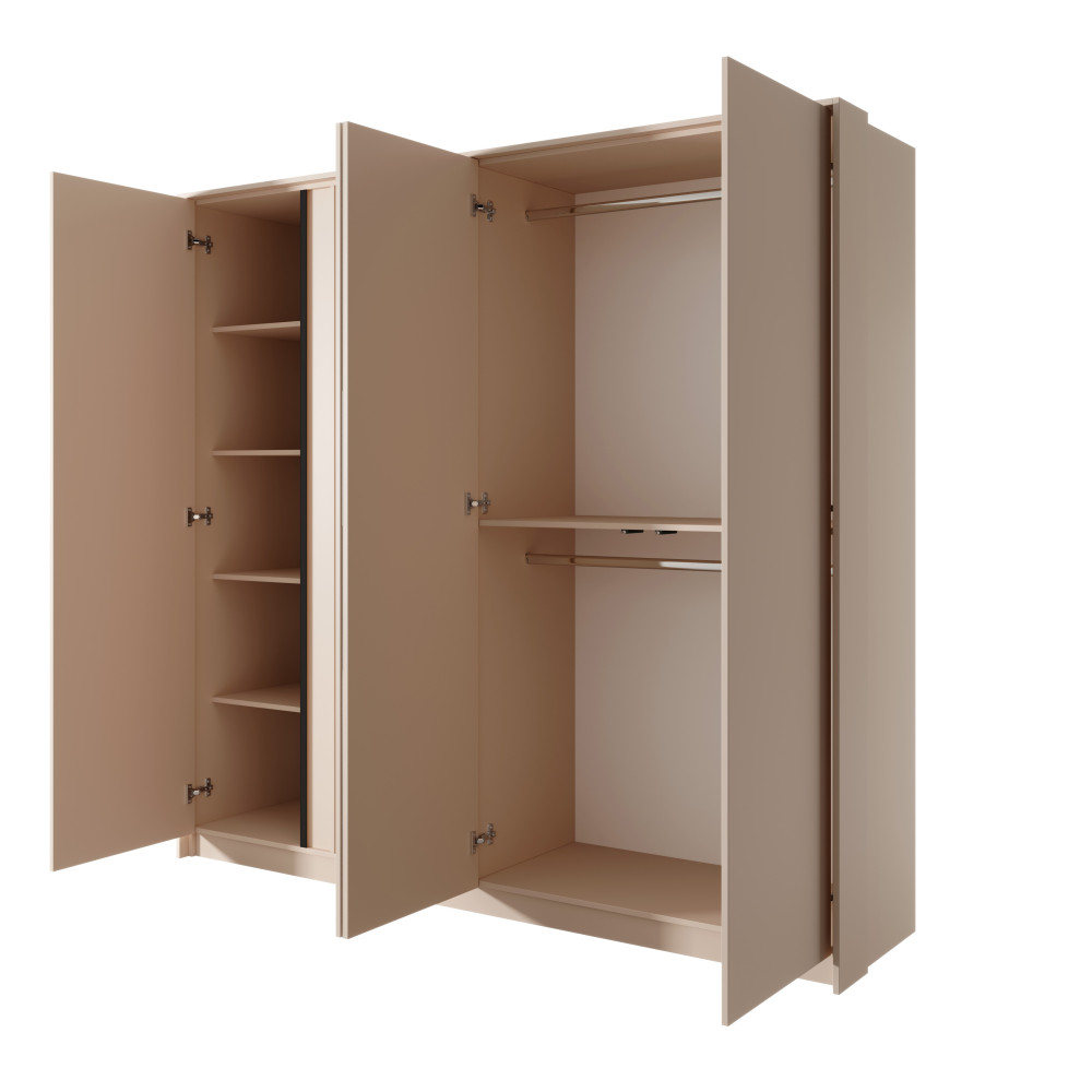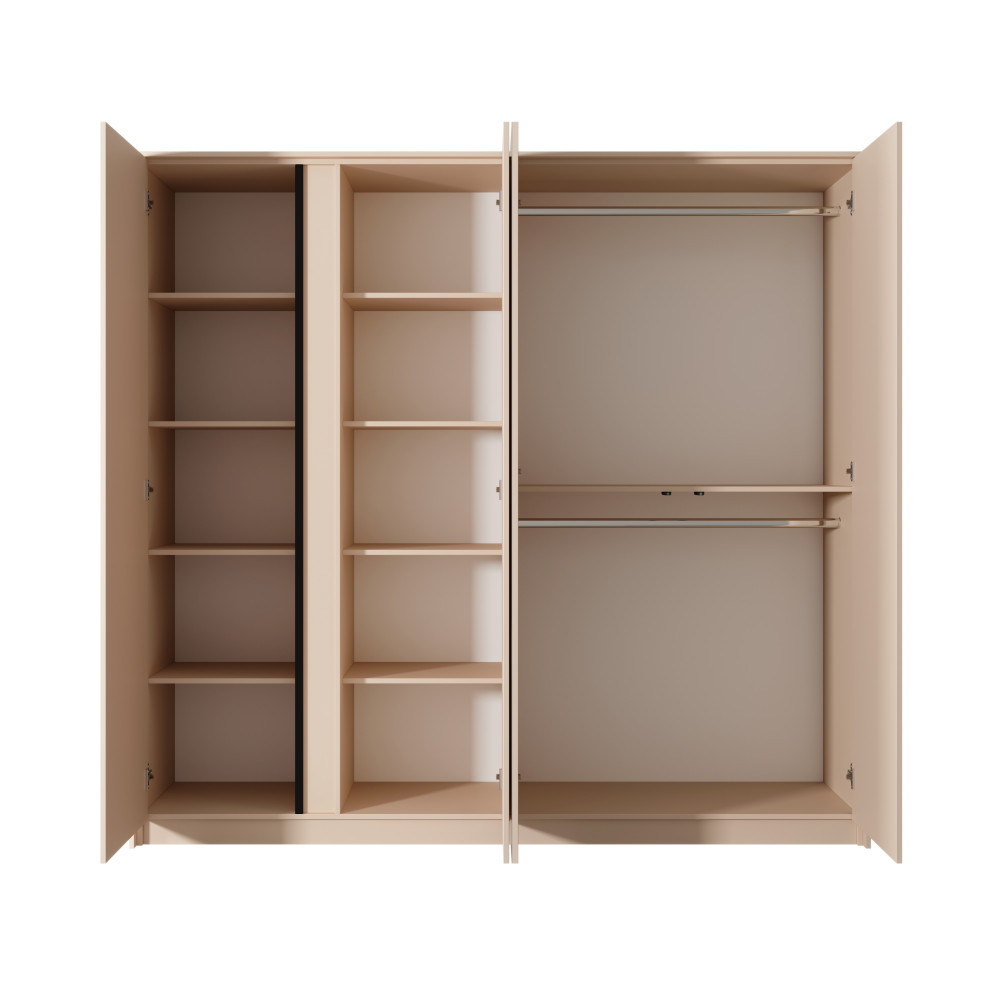 Ta stylowa szafa nie tylko pozwoli na uporządkowanie Twojej garderoby, ale także nadaje sypialni eleganckiego charakteru. Dzięki swojej pojemności i funkcjonalności, zapewni odpowiednie miejsce na przechowywanie wszystkich Twoich rzeczy. Jej nowoczesny design w beżowym kolorze jest uniwersalny i łatwo dopasuje się do różnych stylów aranżacji wnętrz. Opcjonalne oświetlenie LED dodaje subtelnych efektów oświetleniowych, podkreślając wnętrze szafy i ułatwiając codzienne dobieranie ubrań. Wykonana z wysokiej jakości materiałów, ta szafa zapewnia trwałość i długotrwałe użytkowanie. Przyjdź i odkryj wygodę, styl i funkcjonalność tej pięknej szafy, która stanie się nieodzownym elementem Twojej sypialni.