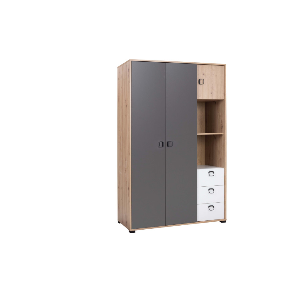 Szafa młodzieżowa "Elena" to eleganckie i funkcjonalne rozwiązanie do pokoju młodzieżowego. Jej stylowa konstrukcja została wykonana z solidnej płyty laminowanej, co gwarantuje trwałość oraz łatwość w utrzymaniu czystości.