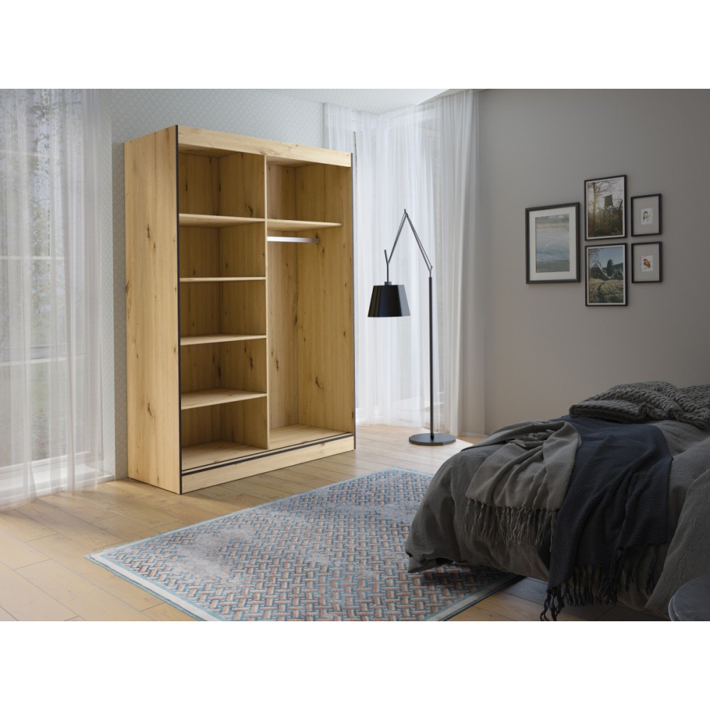 Szafa Loft emanuje elegancją i solidnością dzięki swojej starannie wykonanej konstrukcji i wysokiej jakości materiałom. Jej powierzchnia, wykonana z trwałych płyt laminowanych, prezentuje się wyjątkowo gładko i lśniąco, nadając wnętrzu pomieszczenia nutę nowoczesności.