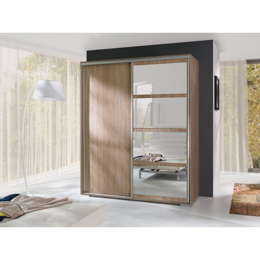 Szafa Monica emanuje elegancją i solidnością dzięki swojej starannie wykonanej konstrukcji i wysokiej jakości materiałom. Jej powierzchnia, wykonana z trwałych płyt laminowanych, prezentuje się wyjątkowo gładko i lśniąco, nadając wnętrzu pomieszczenia nutę nowoczesności.