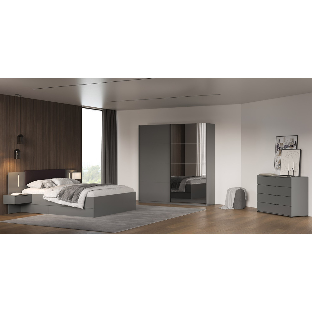 System meblowy do sypialni Dominica to zestaw eleganckich i praktycznych mebli, które są łatwe w utrzymaniu czystości i wygodne w użytkowaniu. Wykonane z najwyższej jakości materiałów. Oferują one wiele możliwości aranżacyjnych dzięki różnorodności elementów, takich jak łóżka, szafki nocne, komody czy szafy. Dostępne są w kolorze Grafit, co pozwala dopasować je do indywidualnych upodobań i stylu wnętrza. W skrócie, system Dominica zapewnia kompleksowe wyposażenie sypialni, które łączy w sobie funkcjonalność, estetykę i wygodę.