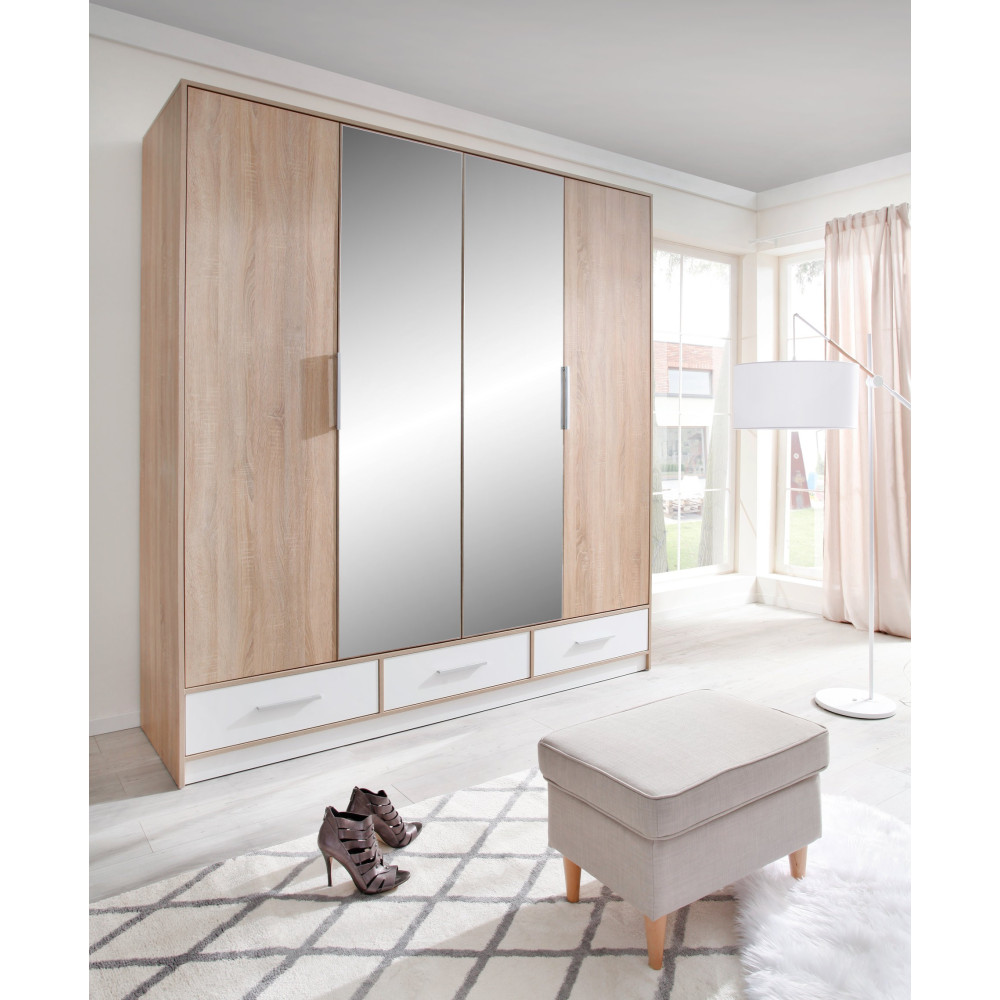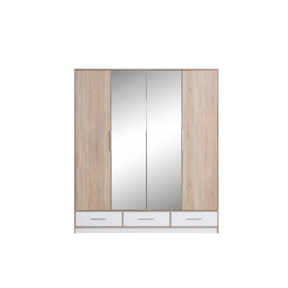 Szafa Morgana 204 4D3SZ Dąb Sonoma/Biały Lux z lustrem