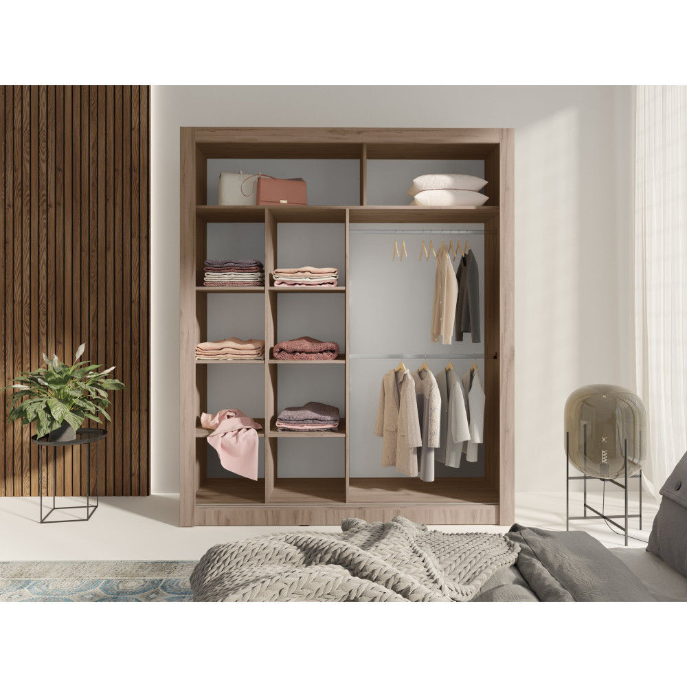 Dzięki połączeniu tych dwóch wysokiej jakości materiałów, Szafa Carmen jest nie tylko funkcjonalna, ale także estetyczna i trwała, będąc idealnym rozwiązaniem do przechowywania ubrań i innych przedmiotów w Twojej przestrzeni mieszkalnej.