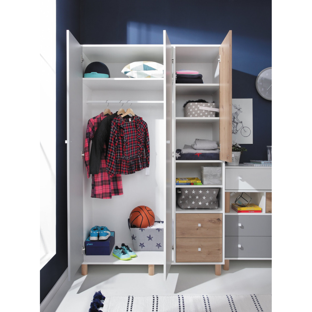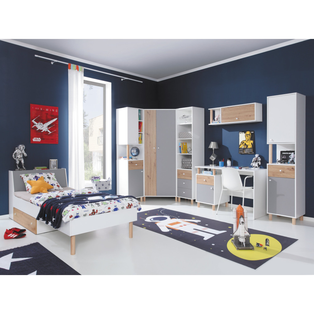 System meblowy młodzieżowy Fox to kolekcja nowoczesnych mebli o atrakcyjnym designie, zaprojektowanych specjalnie z myślą o młodych osobach. Meble te cechuje wysoka jakość wykonania, funkcjonalność oraz przyjazność dla użytkownika. Dzięki różnorodnym elementom, takim jak szafy, biurka czy łóżka, Fox umożliwia skomponowanie harmonijnej i praktycznej przestrzeni życiowej, dostosowanej do indywidualnych potrzeb i preferencji młodego użytkownika.