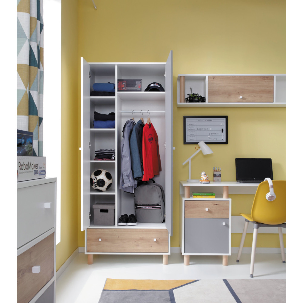 System meblowy młodzieżowy Fox to kolekcja nowoczesnych mebli o atrakcyjnym designie, zaprojektowanych specjalnie z myślą o młodych osobach. Meble te cechuje wysoka jakość wykonania, funkcjonalność oraz przyjazność dla użytkownika. Dzięki różnorodnym elementom, takim jak szafy, biurka czy łóżka, Fox umożliwia skomponowanie harmonijnej i praktycznej przestrzeni życiowej, dostosowanej do indywidualnych potrzeb i preferencji młodego użytkownika.
