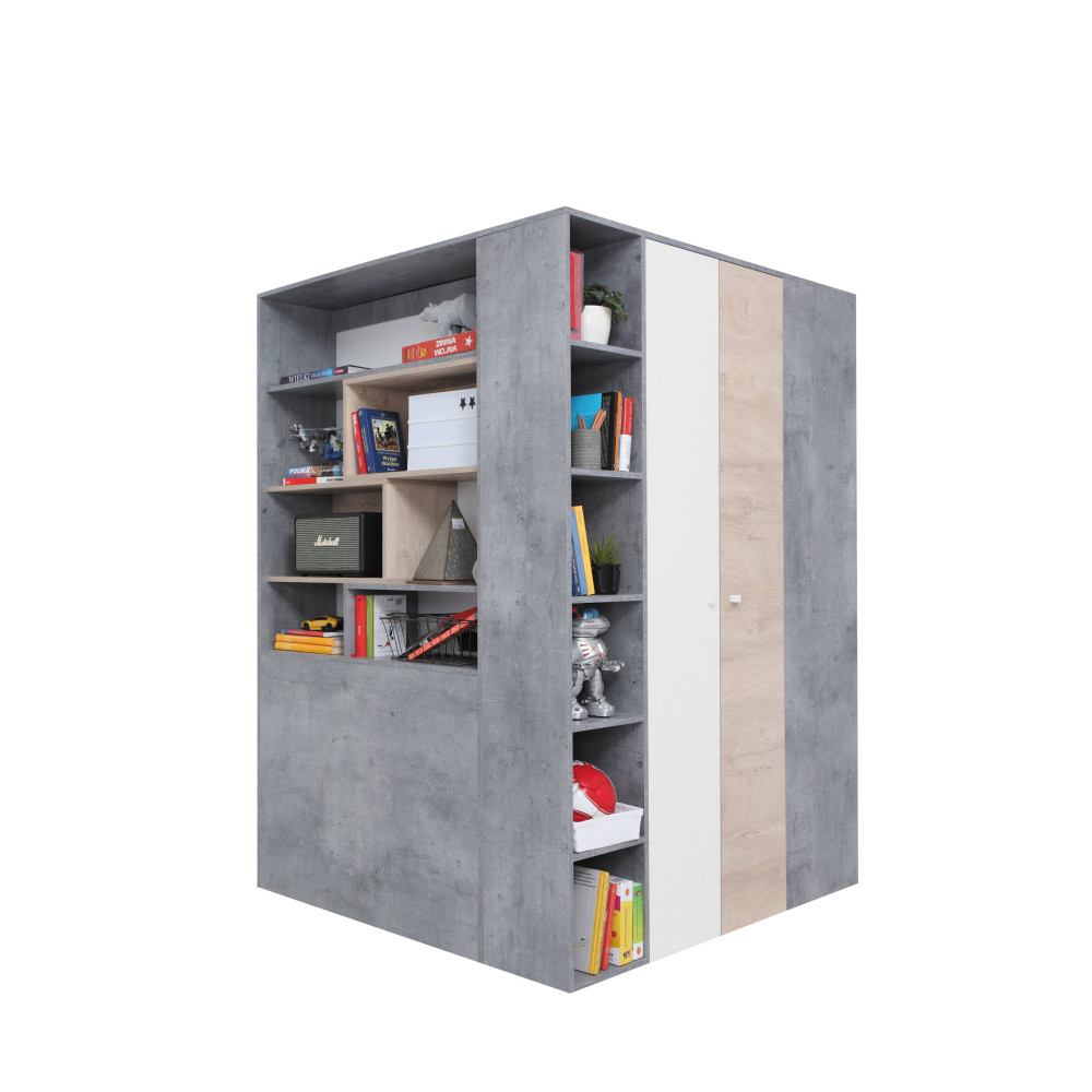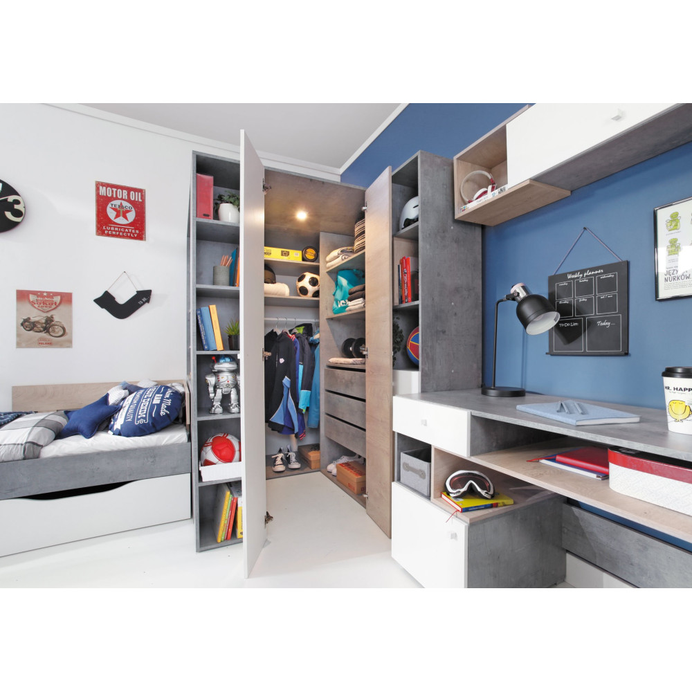 Szafa Sam 135 PRAWA/LEWA Biały Lux/Beton/Dąb