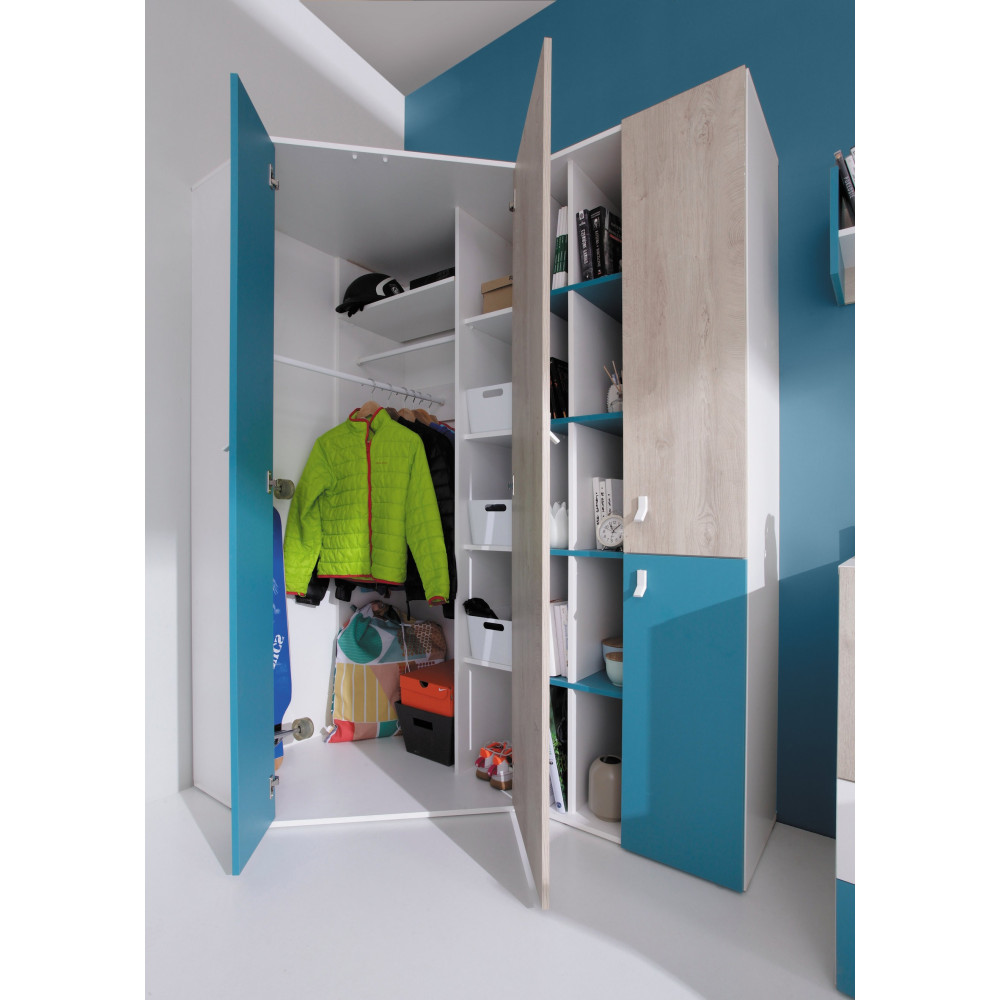 Szafa Plan 90 PRAWA/LEWA Biały Lux/Dąb/Morski narożna