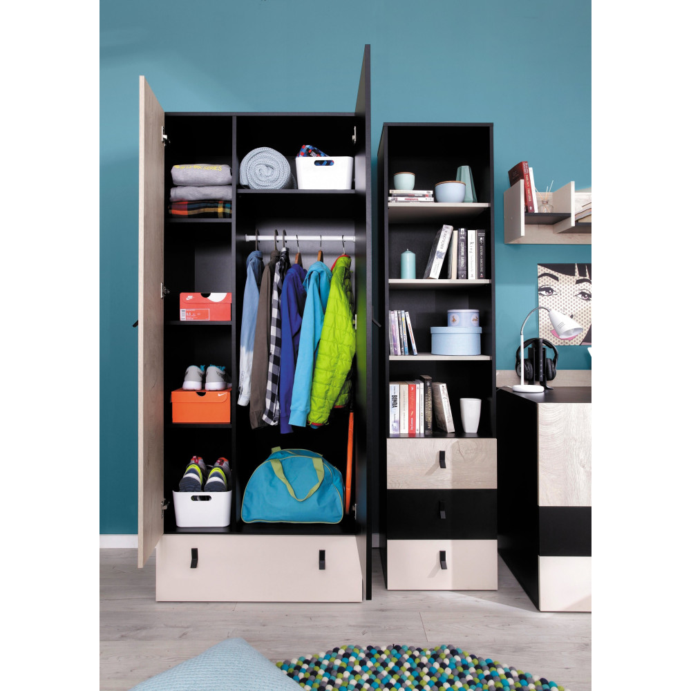 Szafa Plan 80 2D1SZ Czarny/Dąb/Beż