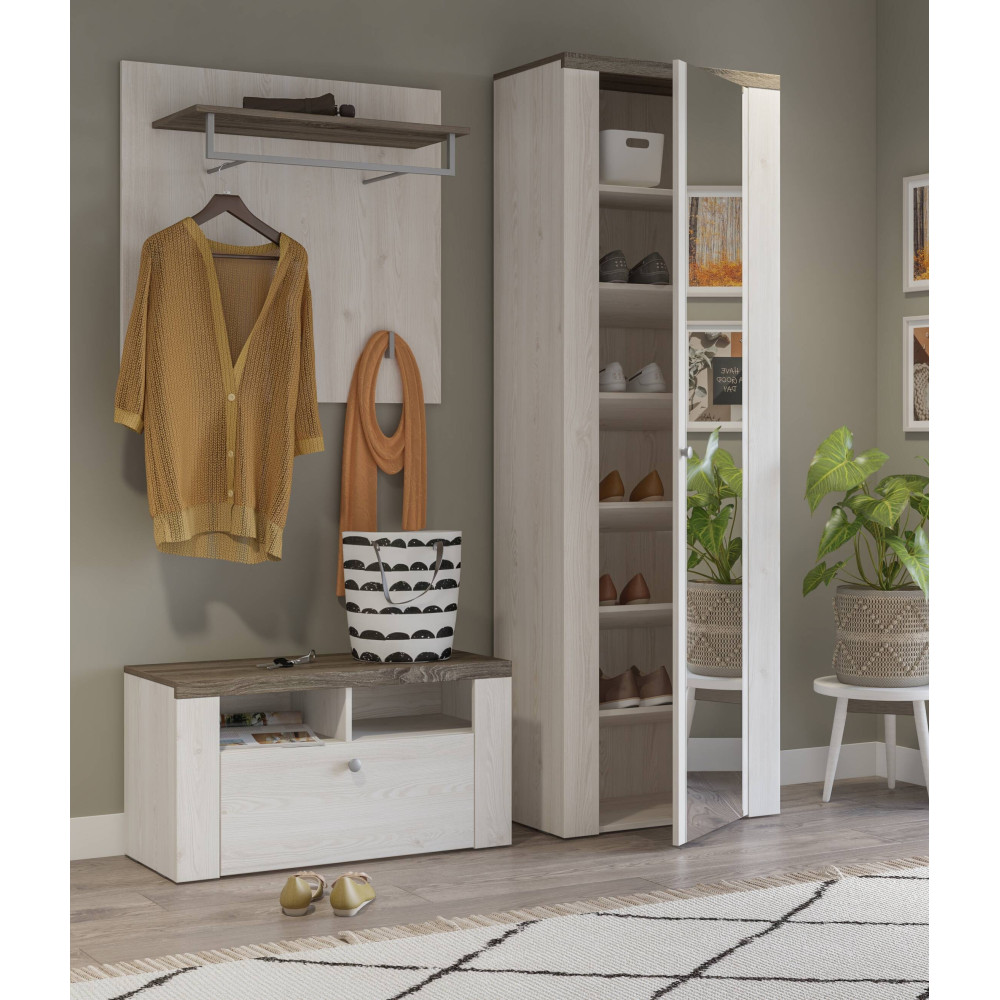 System meblowy do przedpokoju "Lola" to kompleksowe rozwiązanie, które oferuje funkcjonalność, styl i wygodę. Zaprojektowany z myślą o maksymalnym wykorzystaniu przestrzeni, system ten zawiera różnorodne elementy, które można dowolnie zestawiać, aby dopasować je do indywidualnych potrzeb i preferencji użytkowników.