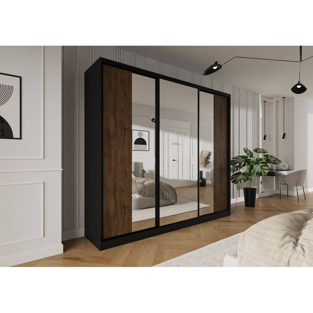 Szafa przesuwna Trend 5 250 Czarny mat + Dąb Lefkas