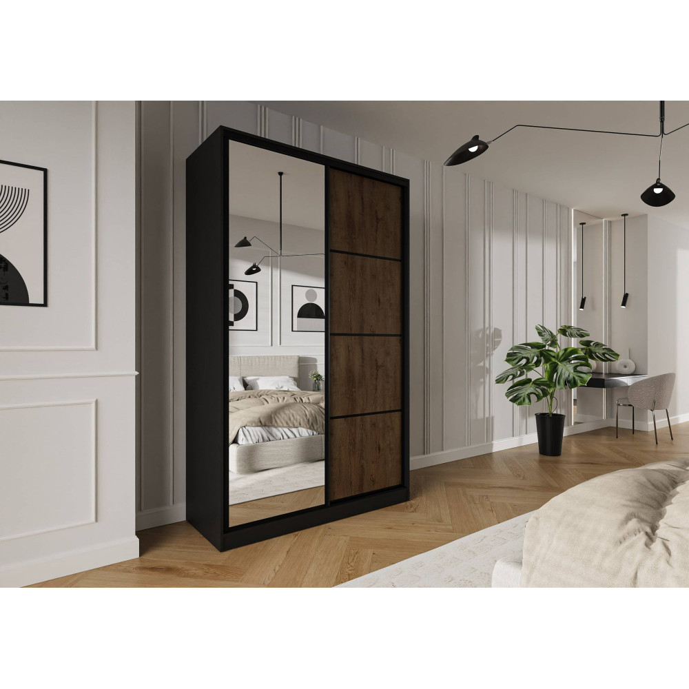 Szafa przesuwna Trend 6 150 Czarny mat + Dąb Lefkas