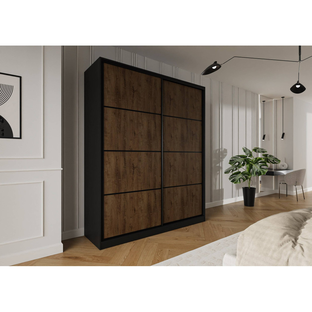 Szafa przesuwna Trend 3 200 Czarny mat + Dąb Lefkas