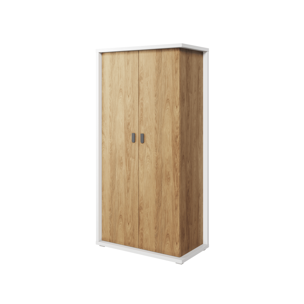 Ponadczasowe zestawienie bieli i dekoru o ciepłej barwie drewna hikora sprawia, że szafa stworzy przytulną aranżację w każdym wnętrzu. Subtelne detale oraz staranne wykonanie sprawiają, że szafa nie tylko spełnia swoje zadanie, ale także wprowadza do wnętrza elegancję i styl.