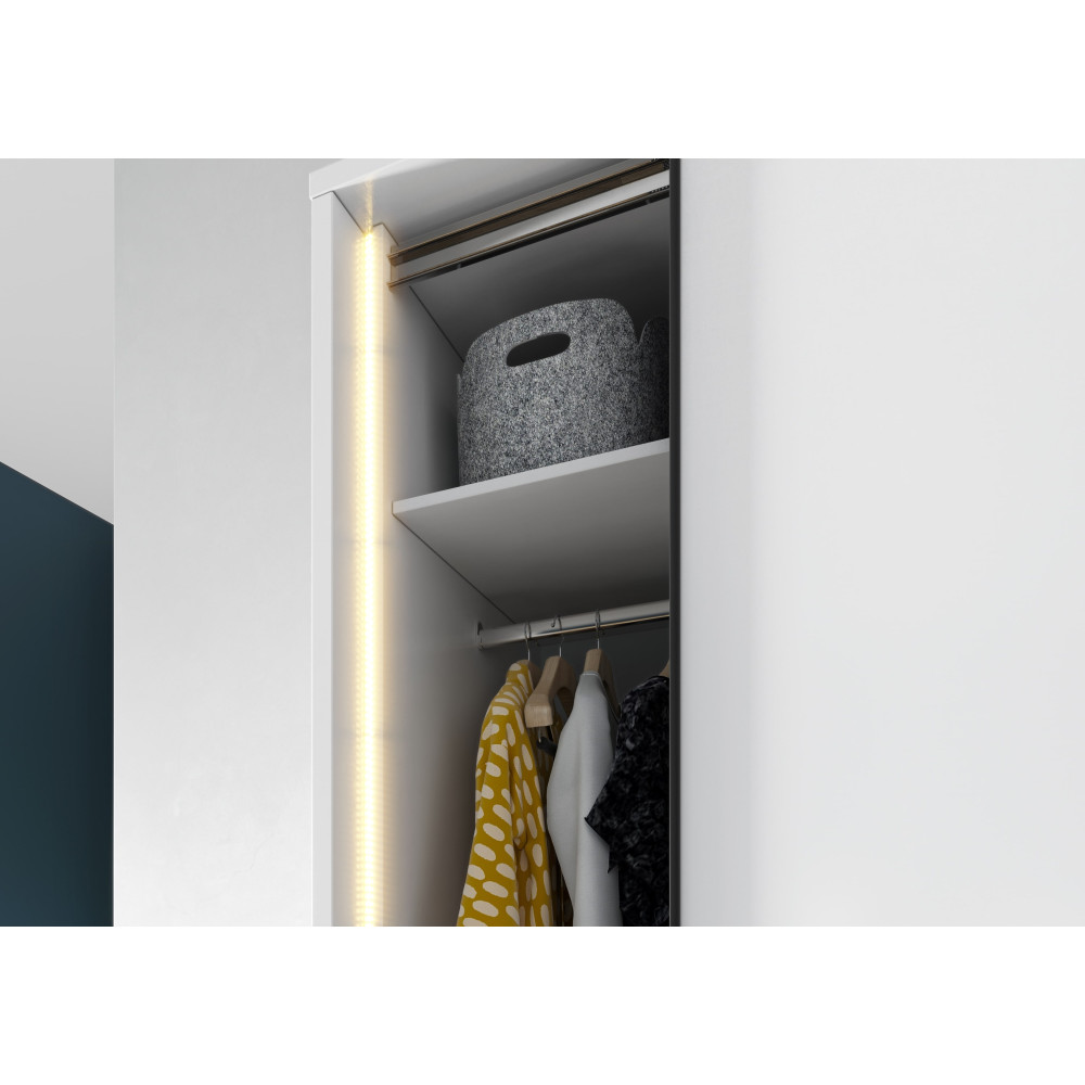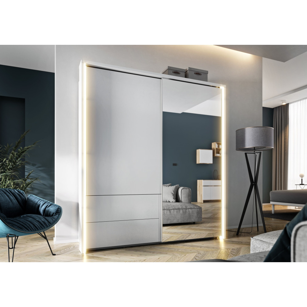 Dwudrzwiowa szafa z kolekcji TAYA wyróżnia się prostym, uniwersalnym stylem, który łatwo dopasujesz do swojego wnętrza. Wyposażona jest w praktyczne, dobrze zorganizowane wnętrze, co pozwala na przechowywanie dużej ilości garderoby. Szafa posiada również dwie pojemne szuflady, a wbudowane lustro optycznie powiększa przestrzeń, dodając wnętrzu lekkości.