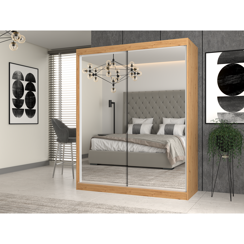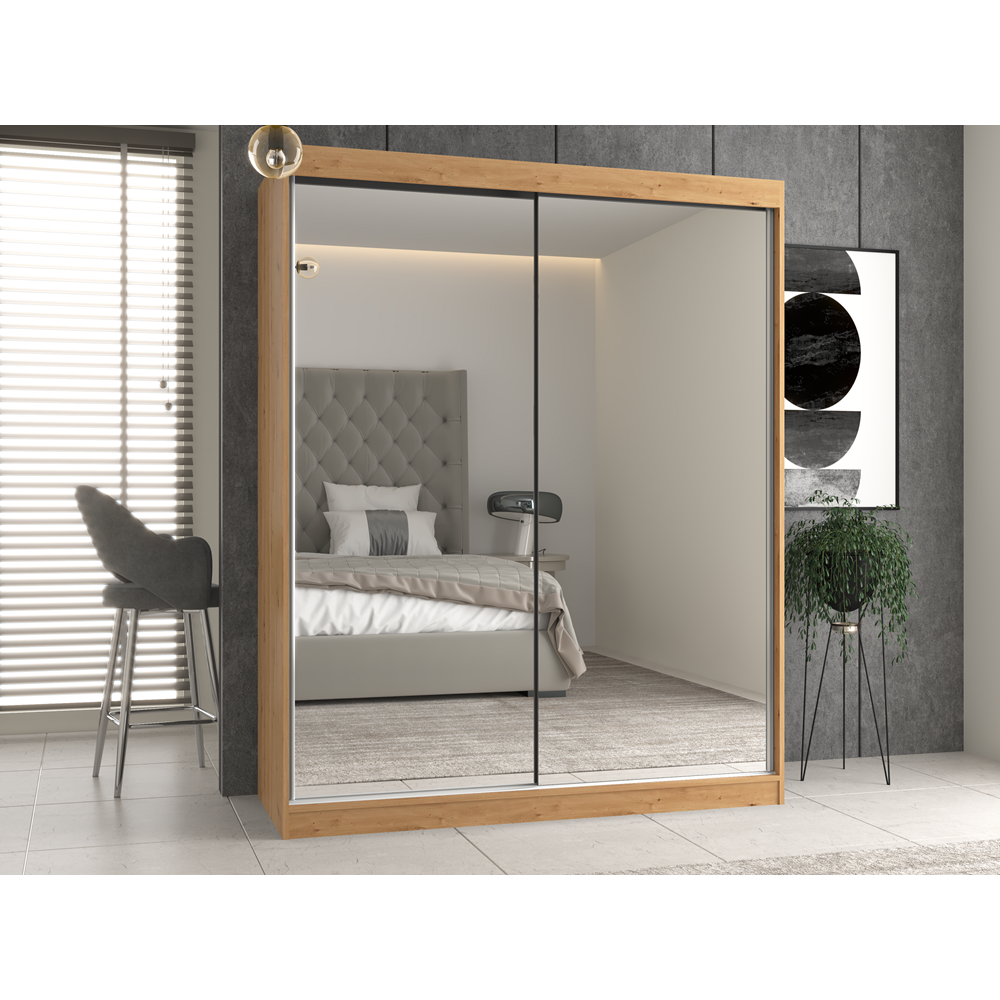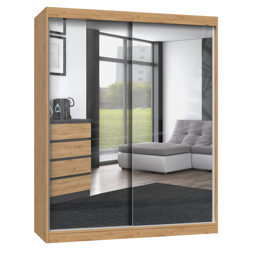 • szafa z przesuwnymi drzwiami na których znajdują się 2 duże lustra
