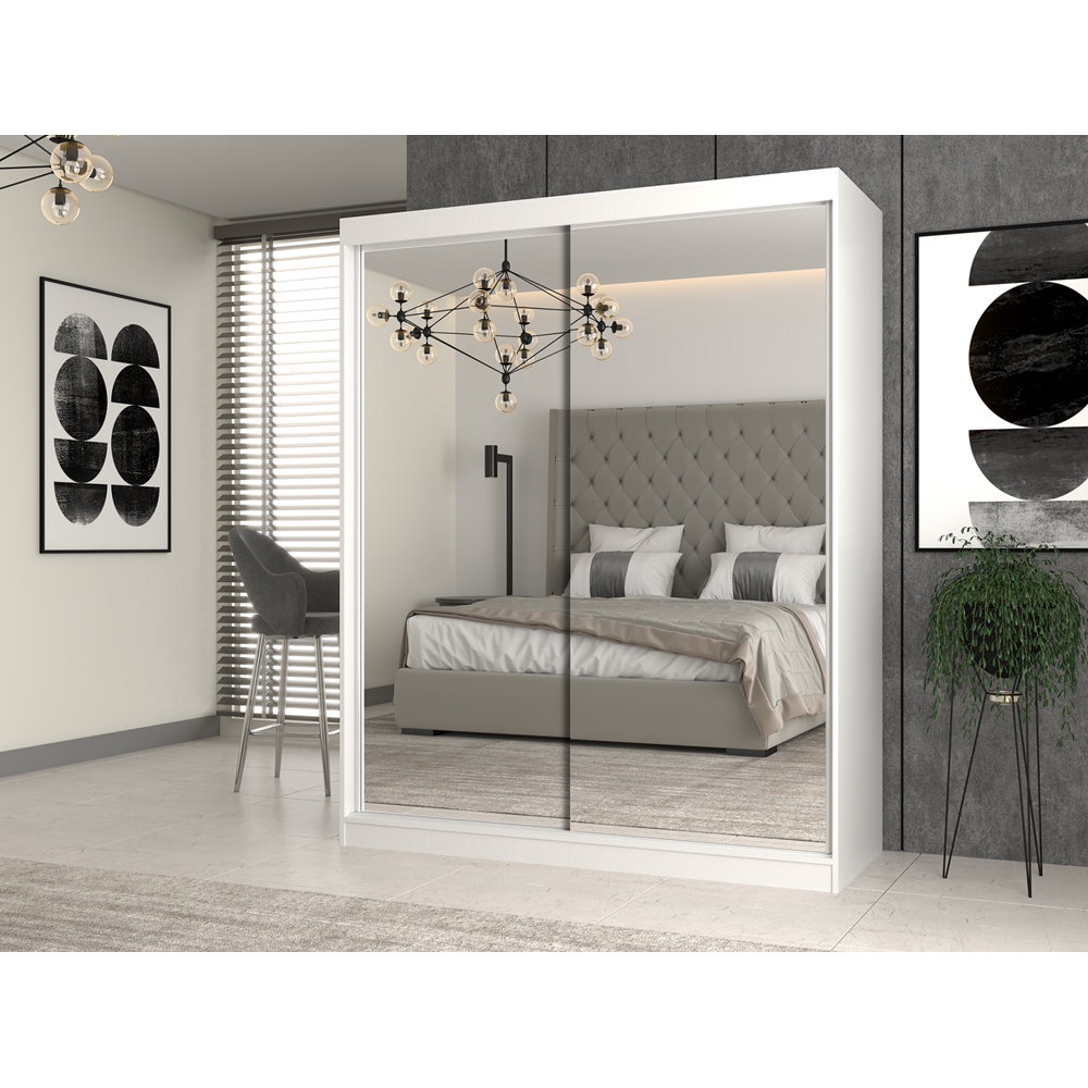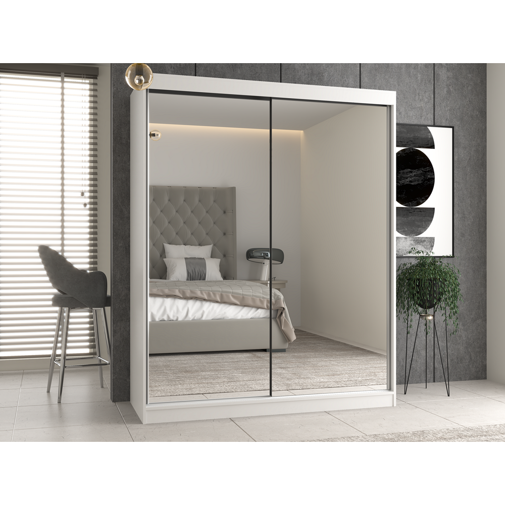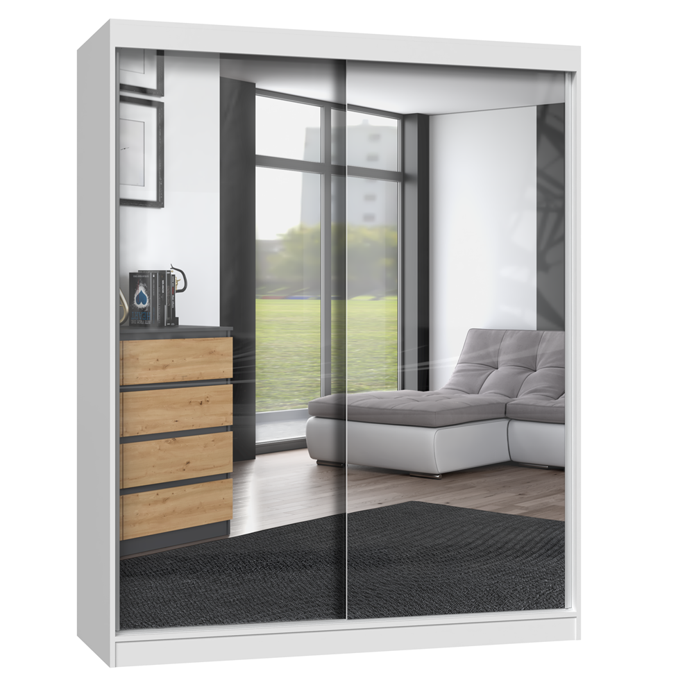 • szafa z przesuwnymi drzwiami na których znajdują się 2 duże lustra