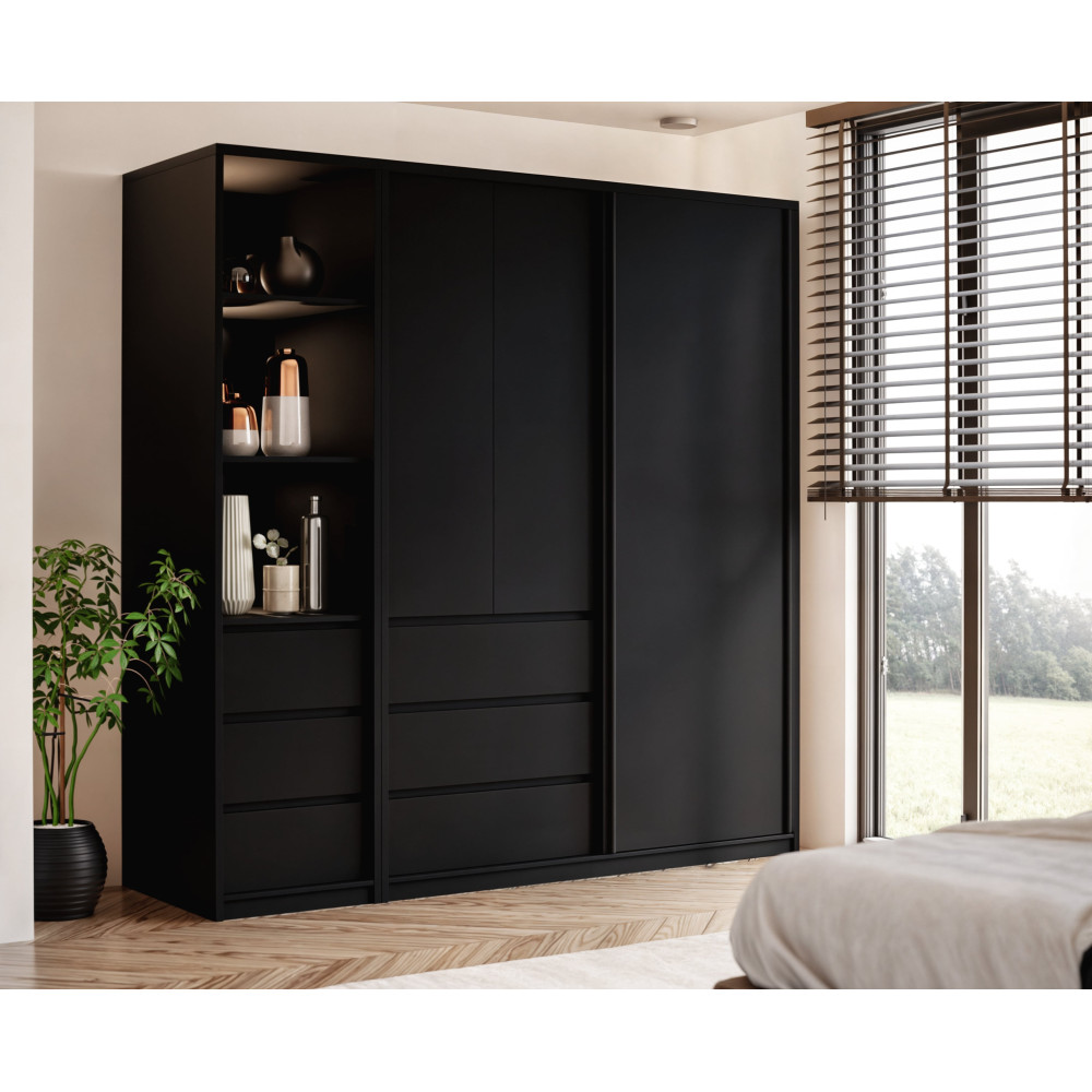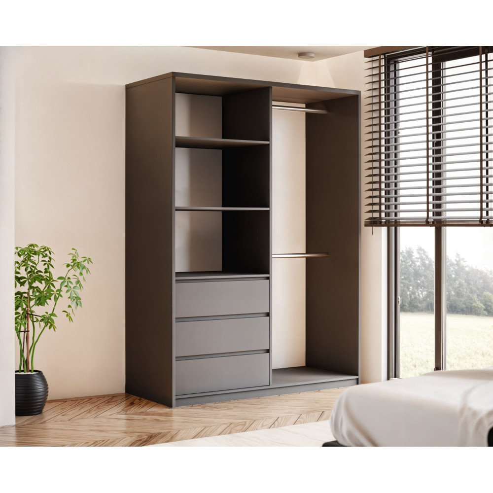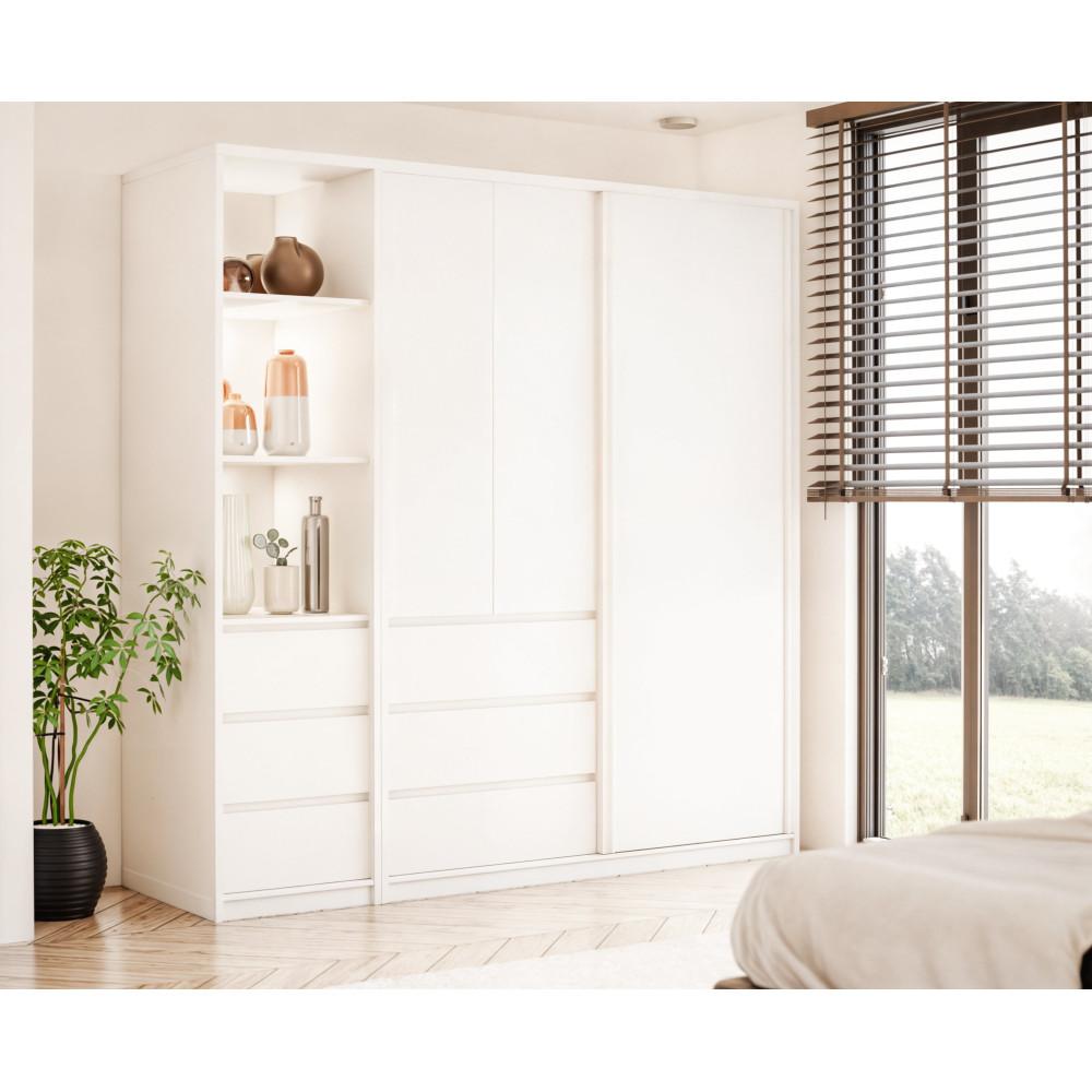 Szafa uchylno-przesuwna Pola to połączenie nowoczesnego designu i funkcjonalności, idealna do każdej przestrzeni, gdzie liczy się zarówno styl, jak i efektywne przechowywanie. Szafa wyposażona jest w trzy praktyczne szuflady, które zapewniają dodatkową przestrzeń do przechowywania drobnych przedmiotów.