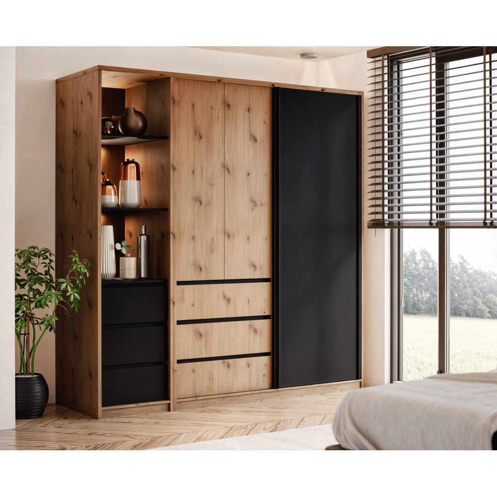 • Dąb Artisan / Czarny mat – połączenie ciepłego drewna z nowoczesnym akcentem czerni.
