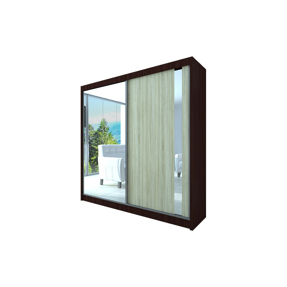 Szafa przesuwna z płyty laminowanej 16 mm. Szafa wyposażona jest w system jezdny zawierający aluminiowe prowadnice typu LAGUNA oraz kółka ułożyskowane