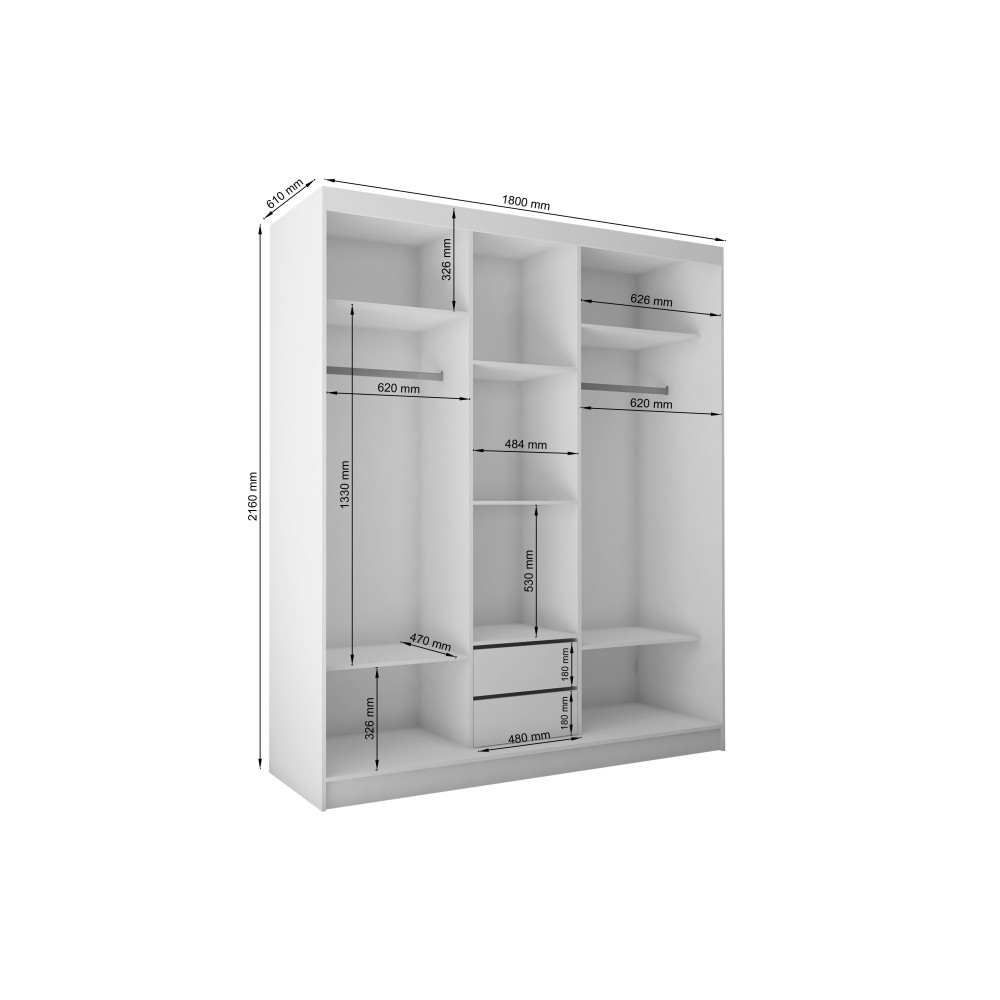 Wymiary: Wysokość: 216 cm; Szerokość 180 cm Głębokość 61 cm