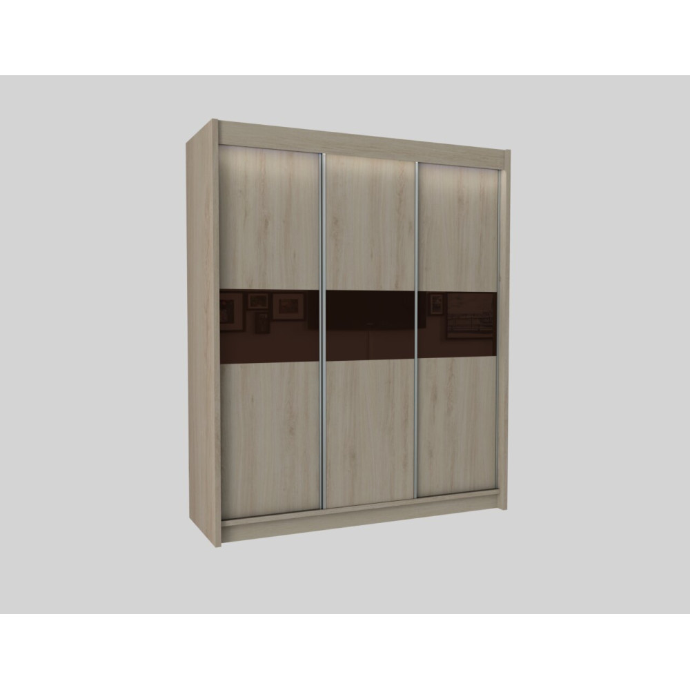 Szafa przesuwna z płyty laminowanej 16 mm. Szafa wyposażona jest w system jezdny zawierający aluminiowe prowadnice typu LAGUNA oraz kółka ułożyskowane