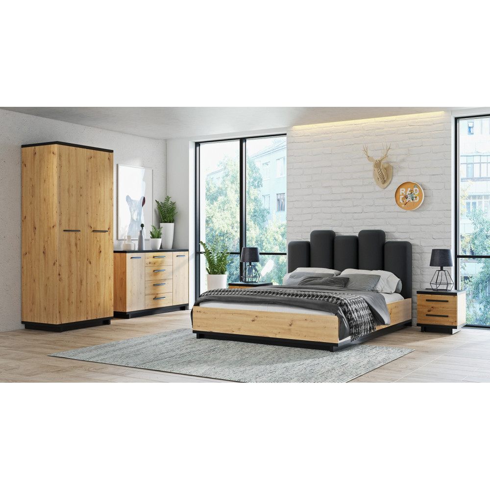 System Ive zaprojektowany został z myślą o sypialni oraz o pokoju dziennym. Charakterystyczne grube czarne blaty, nowoczesne uchwyty o tym samym kolorze w połączeniu z kolorem Dąb Artisan z charakterystycznymi sękami idealnie wkomponują się do Państwa wnętrza.
