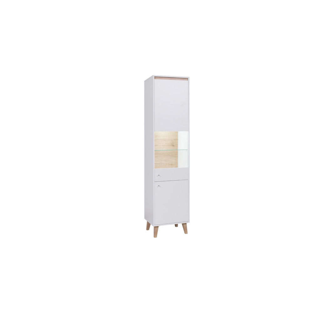 - Korpus i front w kolorze białym, a wstawki i nogi w motywie Dąb San Remo jasnym